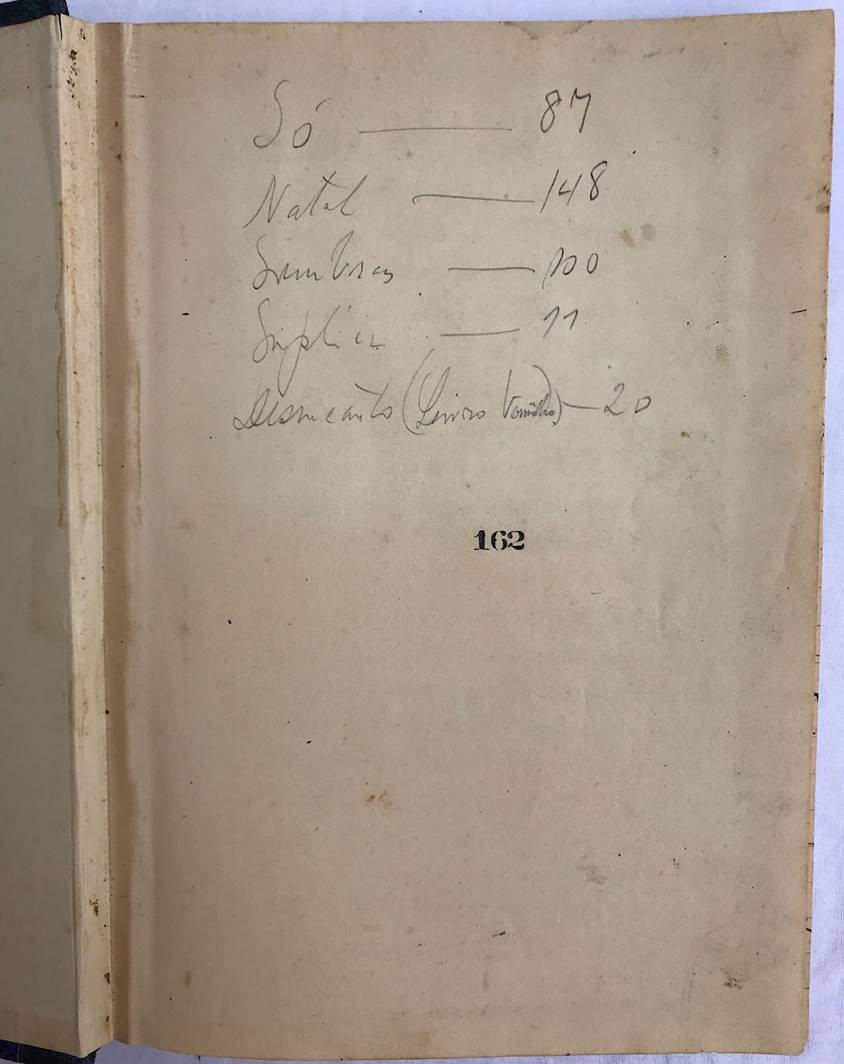 Contém nove cadernos que juntos, costurados, compõem o miolo.