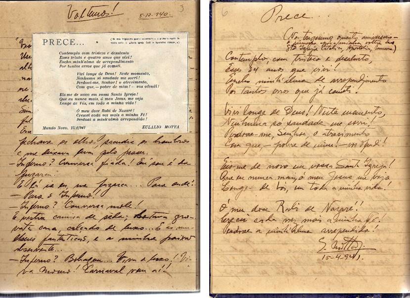 No que concerne a textos de terceiros, há 3 rascunhos de cartas, 1 rascunho de procuração e 5 poemas que são assinados por outras pessoas, mas que se encontram escritos no caderno com a caligrafia de Eulálio Motta. Além desses, há 1 anotação de endereço, que é de autoria não identificada e não foi escrito com a caligrafia do autor.